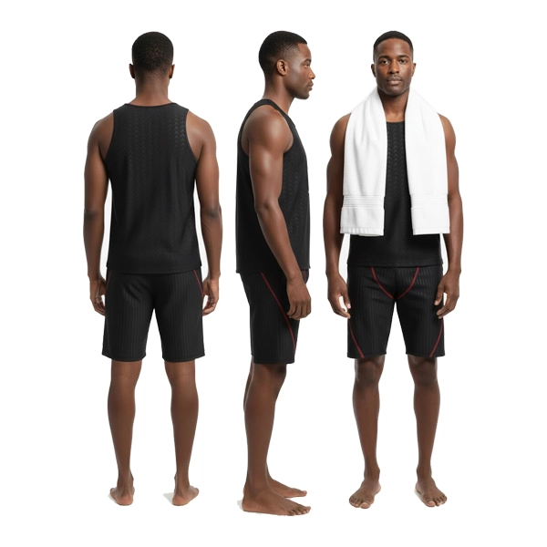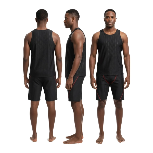 This swim set includes a sleeveless swim top and comfortable swim shorts, both crafted from high-quality, quick-dry fabric that feels lightweight and smooth against the skin. The advanced material is chlorine-resistant and fade-resistant, ensuring long-lasting color and shape even after frequent swimming sessions. Its stretchable construction allows the fabric to adapt naturally to your body, providing a secure yet non-restrictive fit.